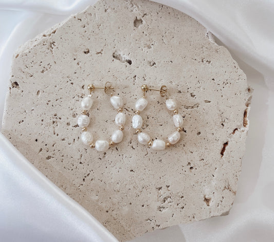 Keala - Gold or Silver Stainless Steel Pearl Hoop Earrings